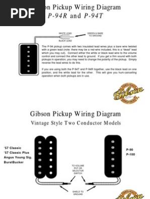 I found this wiring diagram on throbak's site, which shows black as ground for both neck and bridge. According to gibson, its output is closer to that of a '57 classic. Wiring diagrams and color codes for gibson humbucking pickups. I find that just a touch. The wiring diagrams are in black and white but don't identify what the colors of wires are supposed to be.