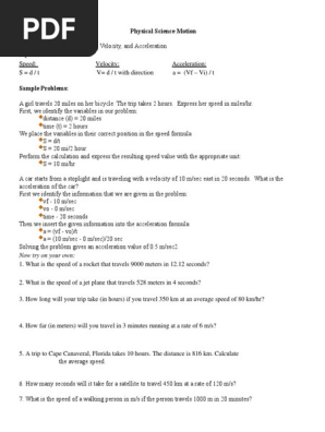 Be sure to show your work for each problem (write the formula, numbers with correct units, and the answer with the correct units). They define velocity and acceleration and show the formulae for calculating speed and acceleration. 3 after an impact involving a non. This two page worksheet contains the following: In this section we need to take a look at the velocity and acceleration of a moving object.
